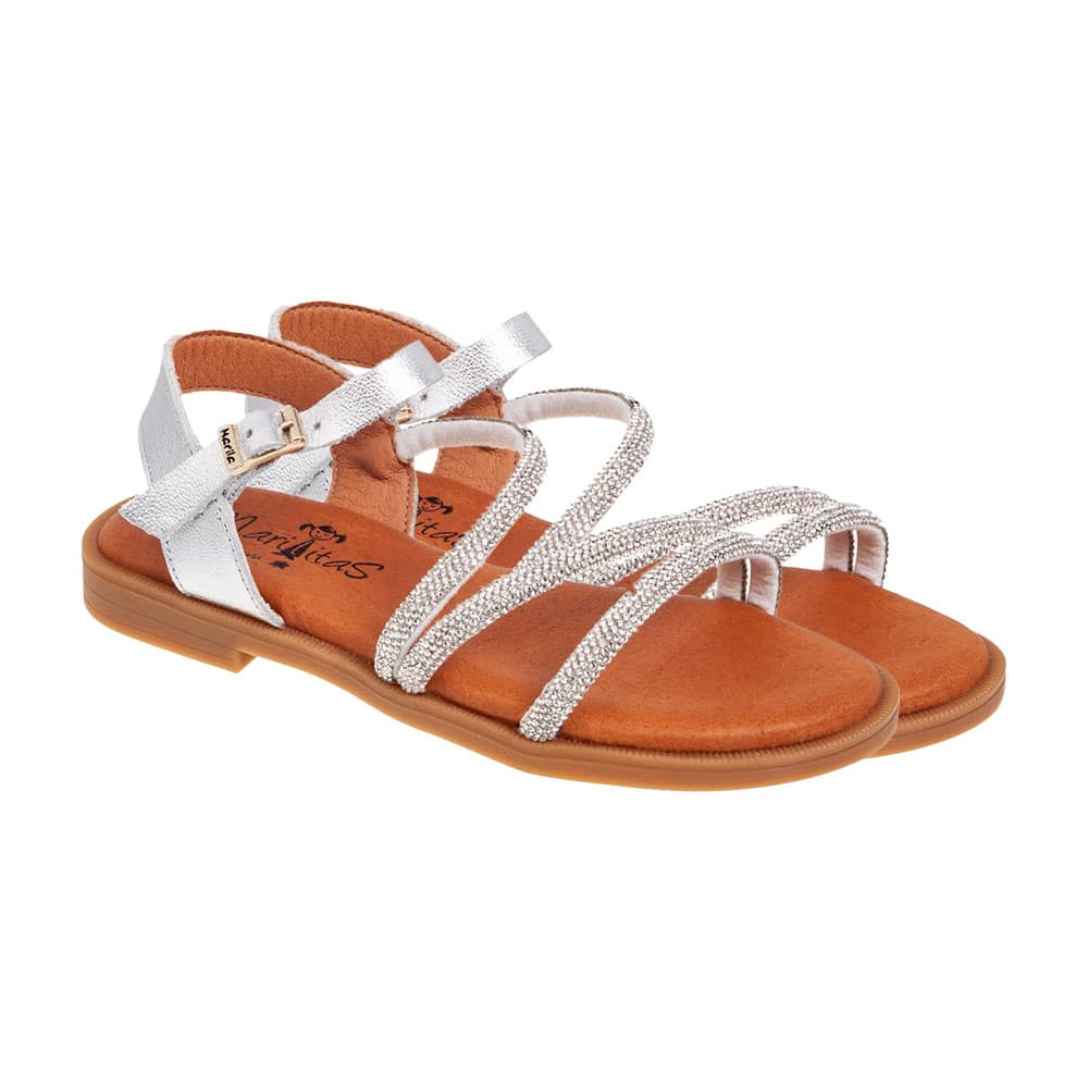 Τα παιδικά πέδιλα Marilitas με λουράκι και εντυπωσιακά strass σε ασημί απόχρωση χαρίζουν κομψότητα και στυλ σε κάθε εμφάνιση.